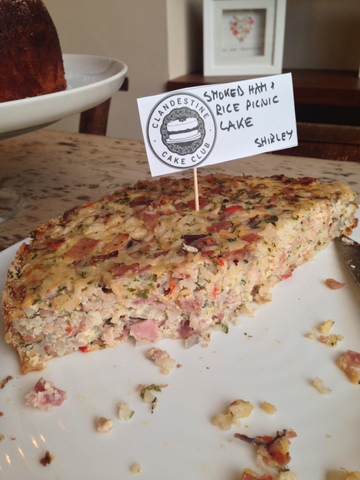This event was no different with an array of interpretations of the theme and combinations of flavours and textures. Stilton cheesecake, apricot & feta, ham & olive featured amongst the savouries. Our sweet cakes (or what I like to call our ‘pudding’!) were a very sumptuous carrot cake (recipe from our very own Clandestine Cake Club Cookbook), beetroot & chocolate and a citrus syrup cake.