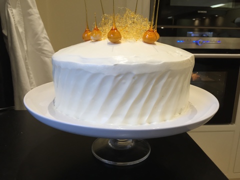 - Apple & maple cake – what could represent autumn more than apples? I actually adapted my carrot cake recipe for this by simply replacing the carrot with equal quantities of apples and also not including any walnuts. It was decorated with a maple syrup cream cheese frosting and spun sugar.