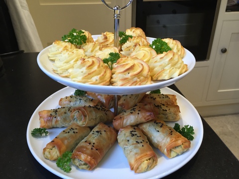 - Moroccan spring rolls – these proved to be a real hit around the table if the comments were anything to go by. A winning combination indeed of mildly spiced lentils, basmati rice, feta & spinach (and a few other secrets), encased in delicate filo pastry.