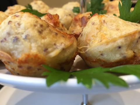 Cheese & wholegrain mustard muffin – a punchy, mature cheddar provides the backdrop to these very light, morsels bursting with flavour. Wholegrain mustard provides a little crunch and hint of ‘heat’.