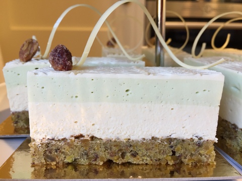 Green tea & jasmine delice – these teas are delicate flavours and can be difficult to achieve enough taste without over doing it and ending up with a bitter tea taste. Tea can ‘stew’ if left too long in hot liquid and while the recipe instructed a warm infusion I chose the cold infusion option soaking the tea in the cream overnight. It’s a safer way of avoiding any bitterness in the flavours. I was happy with the results I must say. For the overall effect of the finish, it was important that the layers of the two tea mousses were even and the final decoration delicate and refined.